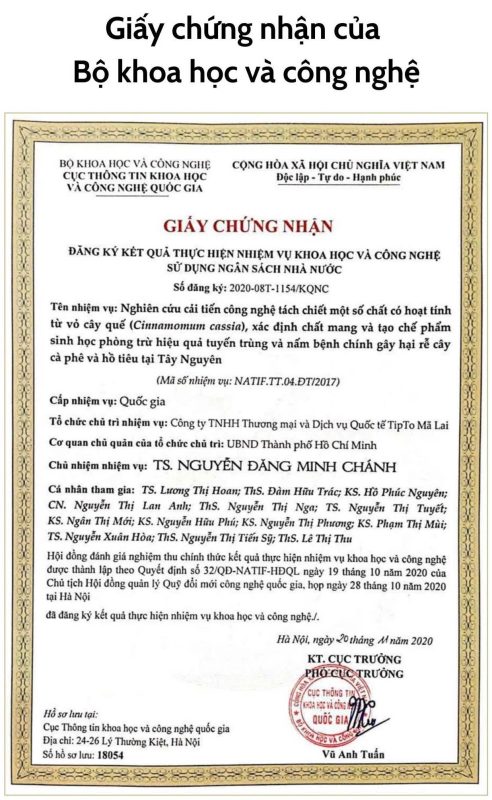 ✔️ HIỆU LỰC NHANH MẠNH, sản phẩm thuộc Đề tài cấp Nhà nước được Hội đồng khoa học cấp Nhà nước chứng nhận với mã sáng chế: 01-2020-00862